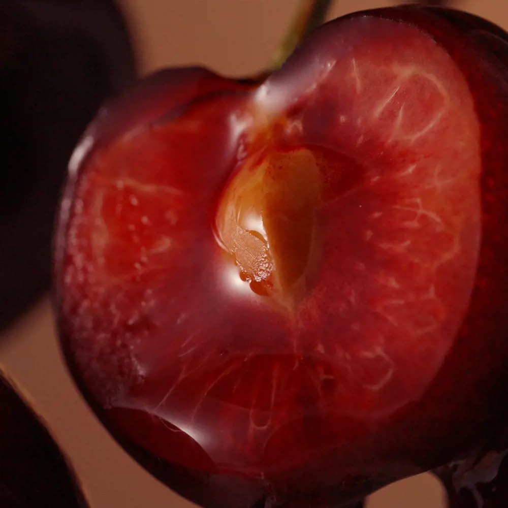 Attractive and exquisite cherries combine with seductive truffle chocolate as if creating an effective and irresistible addiction. A gourmet blend of insatiable sweetness, flirty sour surfaces and powdery creaminess evokes a delicious treat for date night.